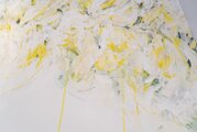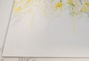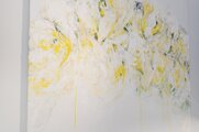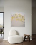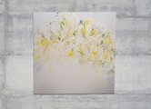 淡い黄色い花を抽象的に美しく描いた作品。いくつもの黄色を重ねたレイヤーがとても存在感があり素敵に飾って頂けます。