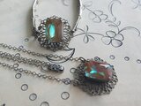 ネックレスの方のサフィレットはとても濃いGreen系でBlueみも少しあります。