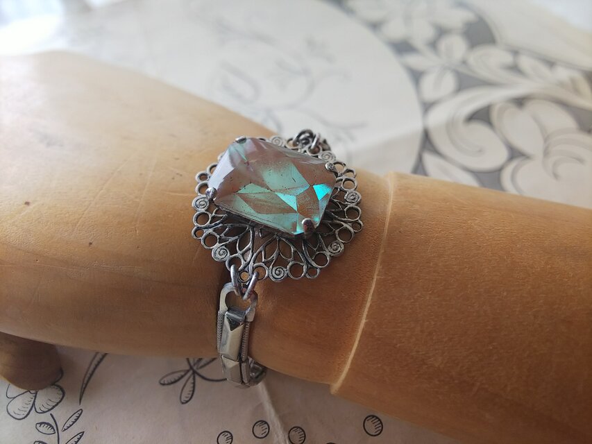 1950年代Germanヴィンテージ、約18×13㎜のオクタゴナルShapeのヴィンテージ・サフィレットを用いてお作りしましたブレスレットです。