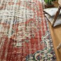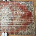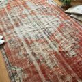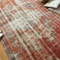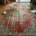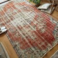 136×229擦れシャビーなメダリオン 赤オレンジ トルコヴィンテージラグ