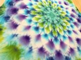 全て染色されるタイダイ染め、絞り染めの作品群。