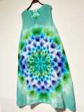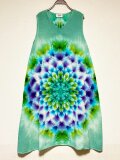 タイダイ ノースリーブワンピース 幻想的な大曼荼羅 千草色 HD24-86