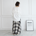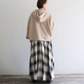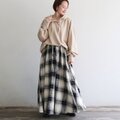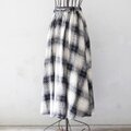 コットンリネンチェック ロングフレアスカート グレー 0447Grey
