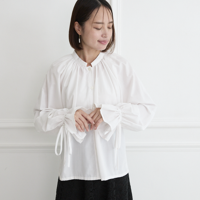ボリューム袖に袖口リボンでジレとのレイヤードにもピッタリ。