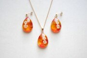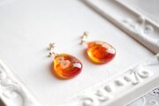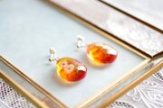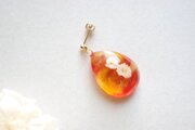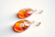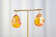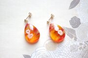 ドロップ型のレジンにお花を二輪咲かせた可憐なピアスです。