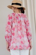 ふんわりとしたシルエットと優しい花柄が魅力の、ラミー100%ブラウスです。