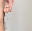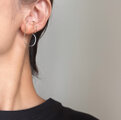 その上部には小さめのフープ状のイヤーカフが輝きます。