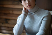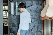 内側に折るのも首元がすっきりとしてお勧めです。年齢関係なく多くの方のベーシックとなれるセーターです。