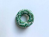 木材をドーナツ板に加工して毛糸を巻いたブローチです。
