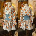 衿まわりと裾に配したホワイトレースが繊細な甘さを添え、デニムとの組み合わせで柄の明度差が際立ちます。モノトーン小物はもちろん、シルバーやオレンジの差し色とも好相性。爽やかな可愛らしさを引き立てる一着です。