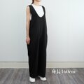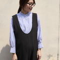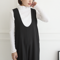 シワになりにくい 深めのUネック サロペット ブラック 0717BK