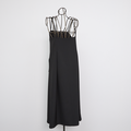 【着丈調整可能/洗える】シワになりにくい レイヤード キャミワンピース ブラック 0712BK