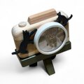• 素材:ホワイトウッド、フェイクレザー(ベージュ系)、透明アクリル(レンズ窓)、木製三脚、黒猫オブジェ