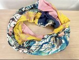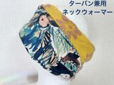 ターバン兼用&オレンジブルーボタニカル柄ハンドメイドネックウォーマー