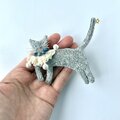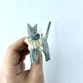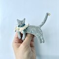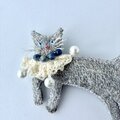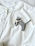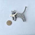 オーガニックウール糸使った刺繍猫ブローチ