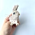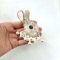 "Usagi " オーガニックウール糸と刺繍糸を合わせた刺繍ふっくら兎ブローチ