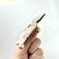 サイトの写真よりなお美しいブローチが届きました!白なのに光でさまざまな色が差し、季節を問わずどんな服にも映えそうです。 包装もとても丁寧で、作品への愛と購入者への心遣いが溢れており、とても幸せな気持ちになりました。 素敵な作品をありがとうございました!きっとまたご縁がつながる気がします。