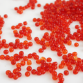 透明の赤や朱色のような赤、オレンジ色のビーズが混ざっています。