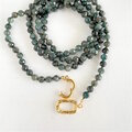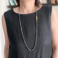 マダガスカル産のブルーグリーン色のカイヤナイトのロングネックレス。