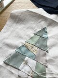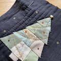 さまざまな生地を繋いでパッチワークした、どこか懐かしさを感じるクリスマスツリー。