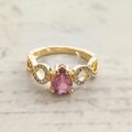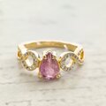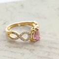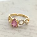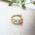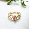 柔らかなピンクが指先を彩る、ペアシェイプのピンクトルマリンリング。