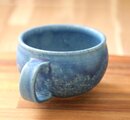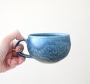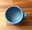空や海の色彩を思わせるマットブルーの釉薬と、素朴でざっくりとした質感の白陶土を合わせて制作したマグカップです。