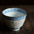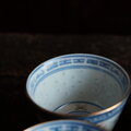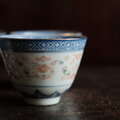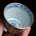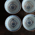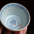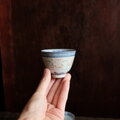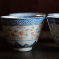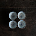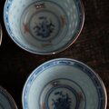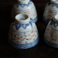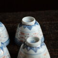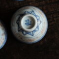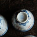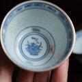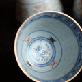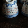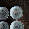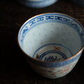 チャイナレトロで可愛い◆青花と漢字。中国景徳鎮 赤絵金彩猪口4客セット 茶杯 蛍焼 湯呑み【訳あり】i1