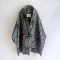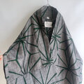 【1点もの】さんかく羽織 ブローチ付き -絹 着物地 グレーに緑の大きな麻の葉模様 (ヴィンテージ) TRH669