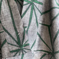 真綿紬の着物地 グレーに緑の大きな麻の葉模様
