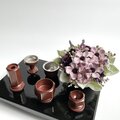 ◇アーティフィシャルフラワーで、淡い水色の陶器の花器にアレンジしました、ミニサイズの仏花です