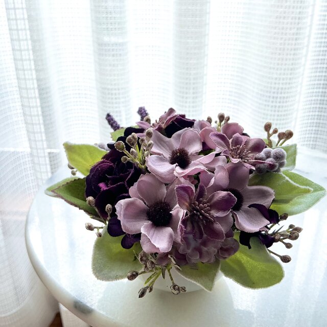 ◇赤紫のグラデーションおカラーでまとめた、とても愛らしく上品なアレンジです
