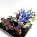 ◇アーティフィシャルフラワーで、艶消しのライトグレーの陶器の花器にアレンジしました、ミニサイズの仏花です