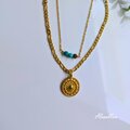 #ターコイズアクセサリー #大人カジュアルネックレス #ステンレスジュエリー #重ね付け風ネックレス #天然石コーデ