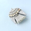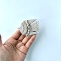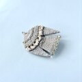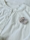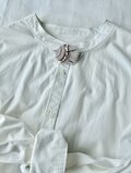 サイトの写真よりなお美しいブローチが届きました!白なのに光でさまざまな色が差し、季節を問わずどんな服にも映えそうです。 包装もとても丁寧で、作品への愛と購入者への心遣いが溢れており、とても幸せな気持ちになりました。 素敵な作品をありがとうございました!きっとまたご縁がつながる気がします。