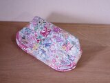 リバティ布地を使用し作りました、パッチワークキルトのポーチです。