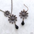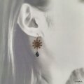 銅古美カラーのイタリア製メタルフラワーにチェコマシンカットのシャープなしずくを合わせました。