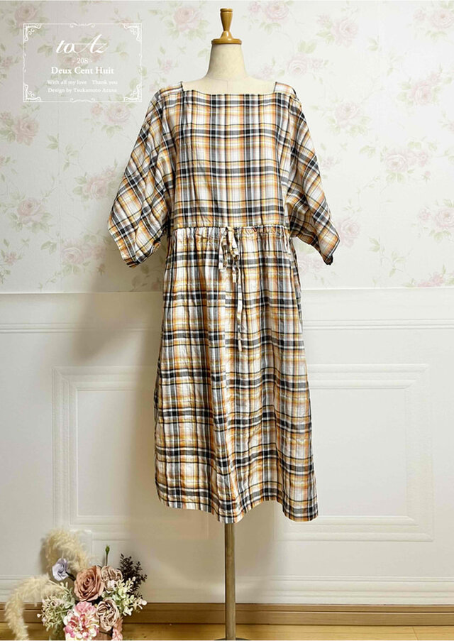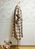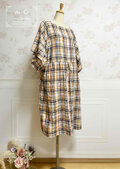 ワッシャー加工を施したチェック柄のカジュアルなセミロング丈ワンピースです。