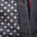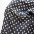 表地には素朴で温かみのある縞模様が広がり、裏地には星型やクロスのようなユニークなテキスタイルデザインが施されています。