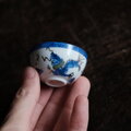 龍と雲と宝珠◆青で素敵。中国景徳鎮 色絵金彩小ぶり猪口 茶杯 ブルー チャイナレトロ シノワズリ 工芸品【縁にアタリ】