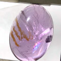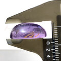 透明感のあるやわらかな紫に、絵筆で描いたようなオレンジ色の内包物が差し色となったオーバルカボションです。