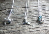 シンプルなシルバー925アズキチェーンでご用意させて頂きます。ご希望があれば追加で写真のような海と砂を思わせるビーチカラーのアパタイトの総天然石ネックレス、皮紐のネックレスにも出来ますのでご希望の場合はお申しつけください。