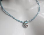 天然石ネックレスにはところどころにカレンシルバービーズを散りばめ、トップのシルバーと一体感を持たせ、爽やかでクール!高級感ある仕上がりです。アパタイトにとても細かい美しいカットが施されているのでキラキラっと輝き、とっても爽やかな印象です。