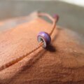 紐の先端も、同じく紫シェブロンの小さな玉を使用しました。