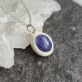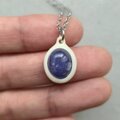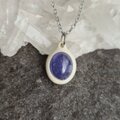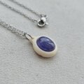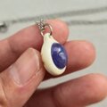 鹿の角を土台に削り出し、タンザナイトを埋め込んだネックレスです。