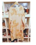 418 1着のみ ゆったりしたワンピース コクーンワンピース 正絹着物リメイク シルク オレンジ系 花柄