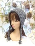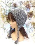 ニット帽 ビーニー 三編み付き ワッチキャップ グレー