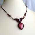 ロードナイト(インド産)・レインボームーンストーン(インド産)マクラメ編みチョーカーネックレス 1点もの 3787