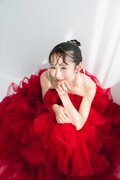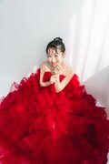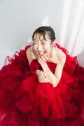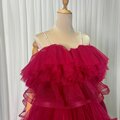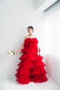 実例写真!カラードレス キャミソール ビーズ チェリーピンク ラッフルフリル ロング 前撮り 二次会