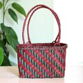 クラフトバンドで編んだレッド・グリーンカラーのカゴバッグです。
