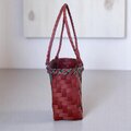 落ち着いたレッド系の色をベースに、グリーンやイエロー、グレーなどのトリコロールカラーのクラフトバンドを差し色として使用しています。深みのあるカラーリングが目を引く、個性的なデザインです。